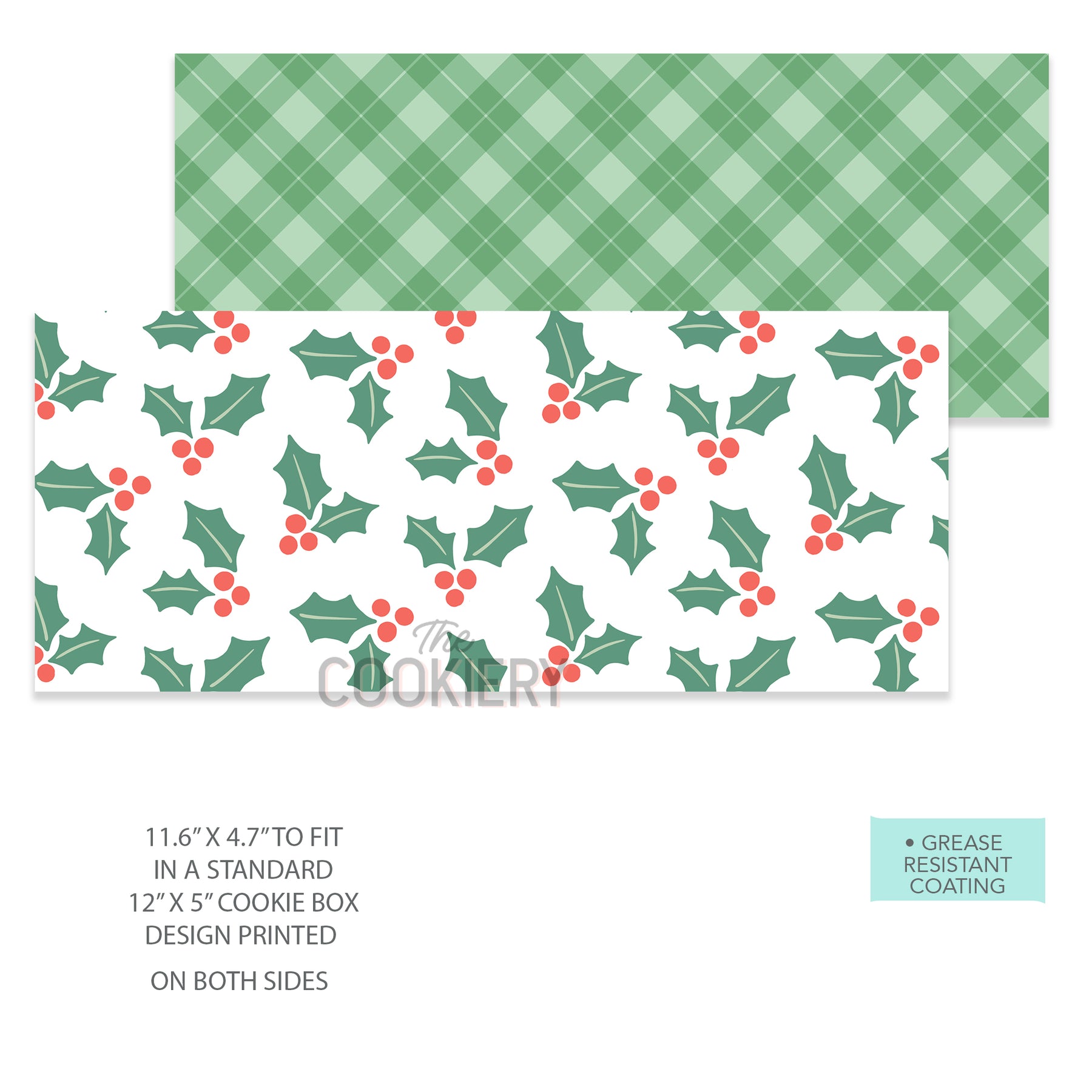 Christmas Holly Grease-Resistant Food Safe Cookie Card Box Backers - 11.6" x 4.7"