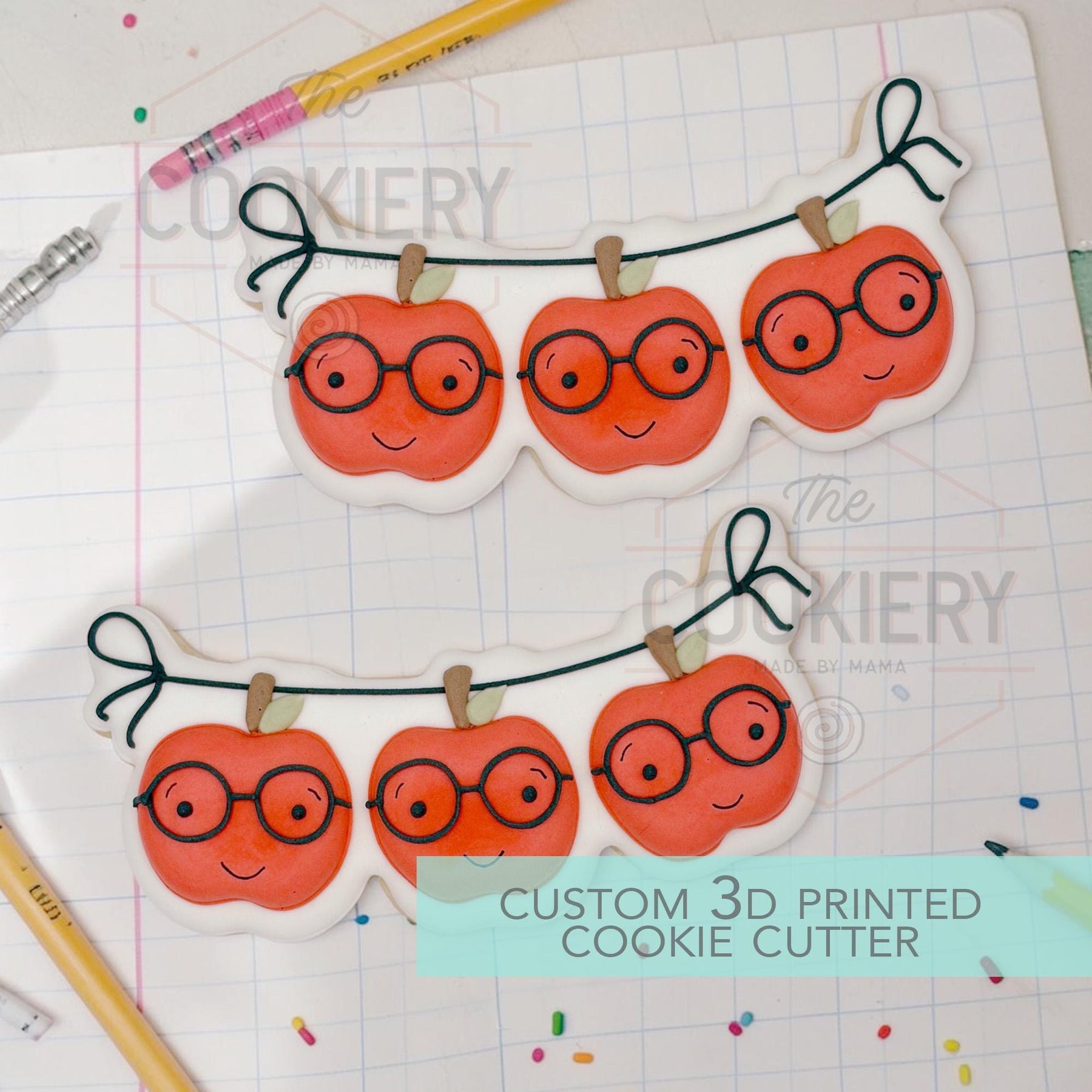 Apple Banner Cookie Cutter - Back to School, Teacher Appreciation- 3D Printed Cookie Cutter - TCK52179